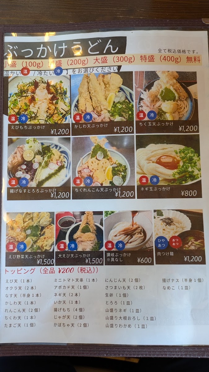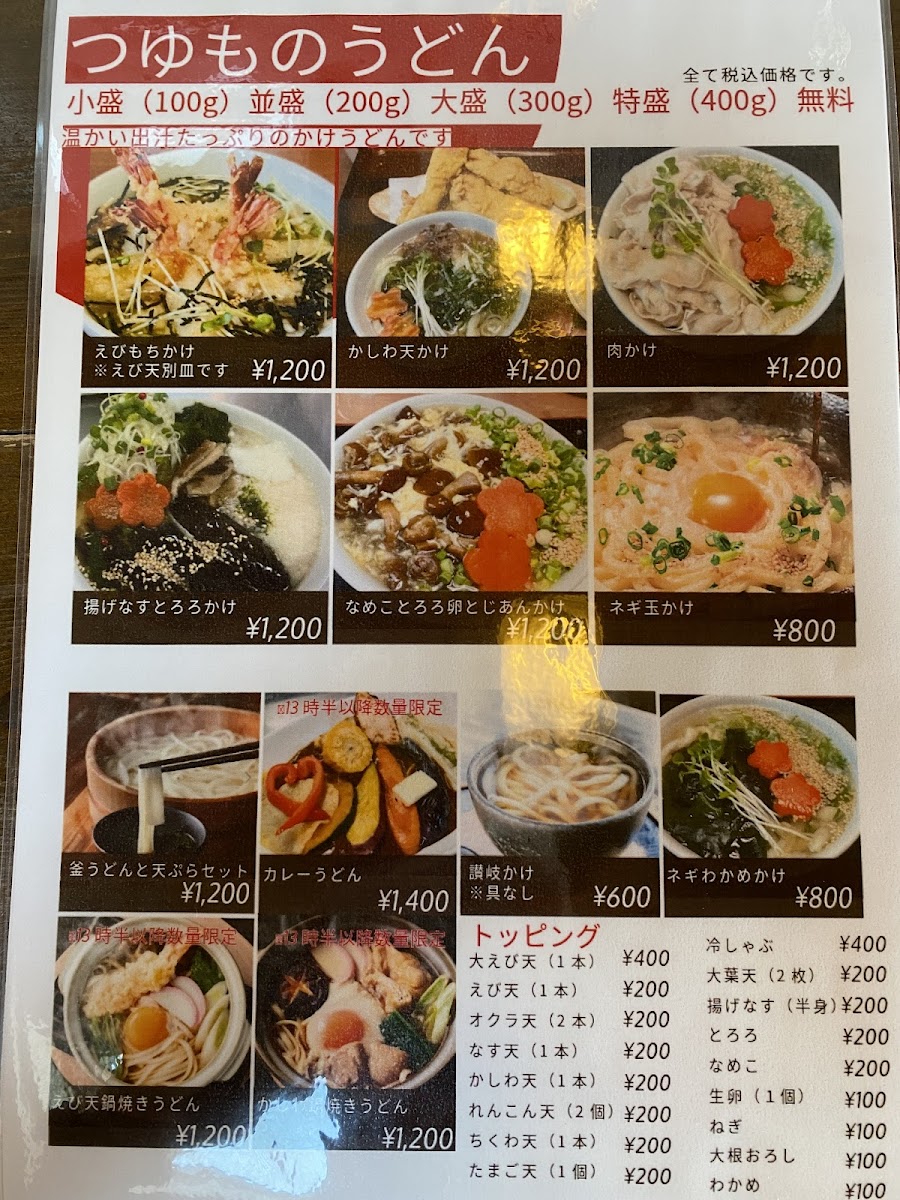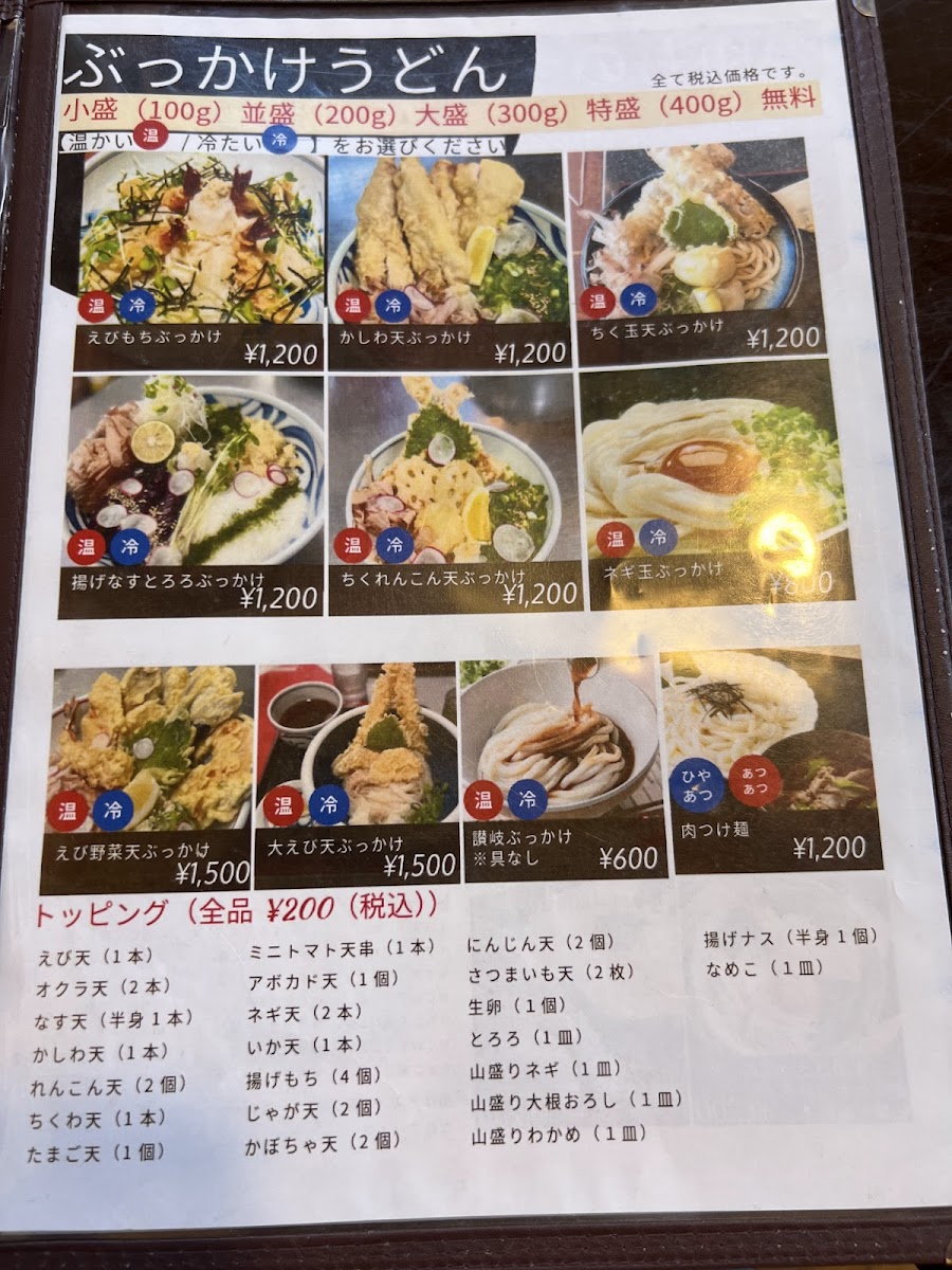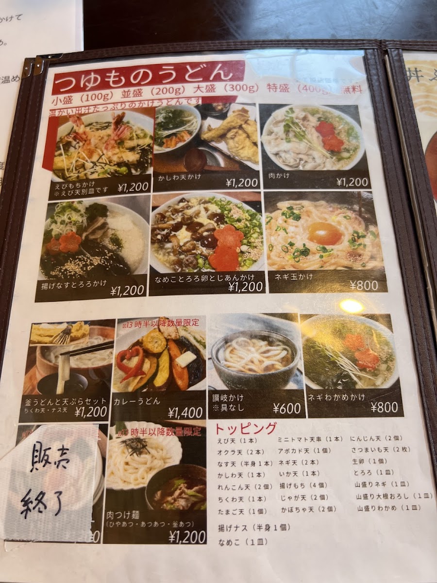 Menya Okhotsk’s menu at 3 Ku-46-1 町北兵村, Yubetsu (Hokkaido) feels like a focused love letter to udon-warm, hearty, and built around comfort-first combinations rather than endless variety. If you want something bold and filling, カレーうどん stands out as the kind of rich, warming bowl that suits Hokkaido’s chill, while とり天うどん balances a soothing broth with crisp chicken tempura for extra texture. For a more classic, no-fuss experience, きつねうどん offers that gentle, familiar sweetness, and 釜揚げうどん keeps things simple and satisfying with a cleaner, more straightforward udon profile. Tempura lovers will have plenty to enjoy: かき揚げ is a great add-on for crunch, while たまご天, 玉子の天ぷら, and かしわの天ぷら lean into the restaurant’s strength in frying-golden, savory accents that make even a basic udon feel more complete. If you’re hungry or want the “best of both worlds,” sets like うどん天丼セット and 鍋焼きうどんセット are clearly designed for maximum satisfaction, pairing udon with rice-bowl comfort in a single order. The hot-style ぶっかけうどん 温 is another smart option when you want something slightly lighter in feel but still warming, while the pot-style dishes-かしわ鍋焼きウドン and the more comprehensive 鍋焼きうどんセット-push the menu toward deep, homey richness. For a more meat-forward bite, 肉うどん天婦羅 combines savory udon with tempura, and かしわの天 rounds out the lineup as another reliable pick for those who want chicken tempura as the main highlight. Overall, the menu reads like it’s built for repeat visits: choose your udon base, decide how much tempura you want, and scale up to a set when you’re ready to go all-in.
